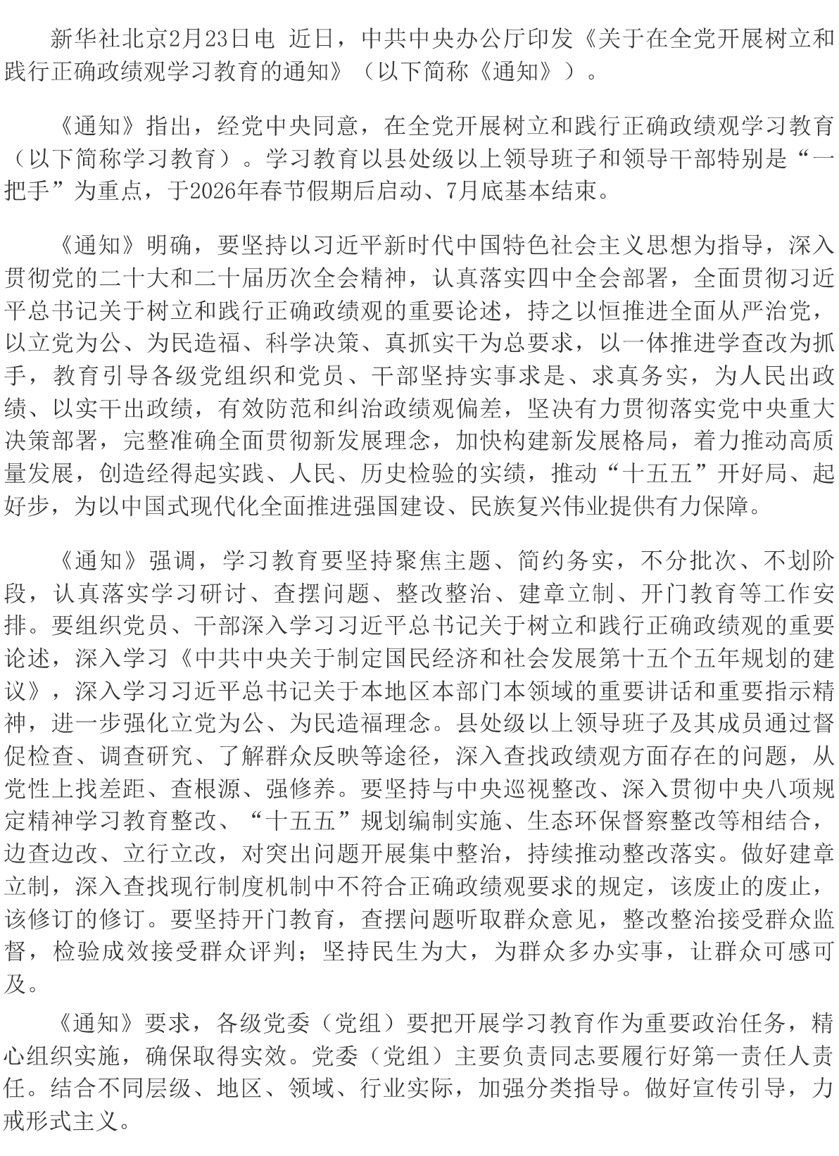 中辦印發(fā)《通知》在全黨開(kāi)展樹(shù)立和踐行正確政績(jī)觀學(xué)習(xí)教育