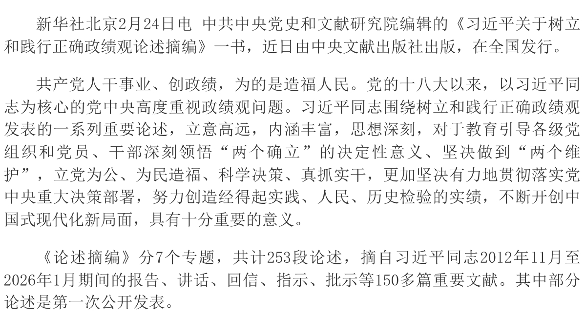 《習(xí)近平關(guān)于樹立和踐行正確政績觀論述摘編》出版發(fā)行