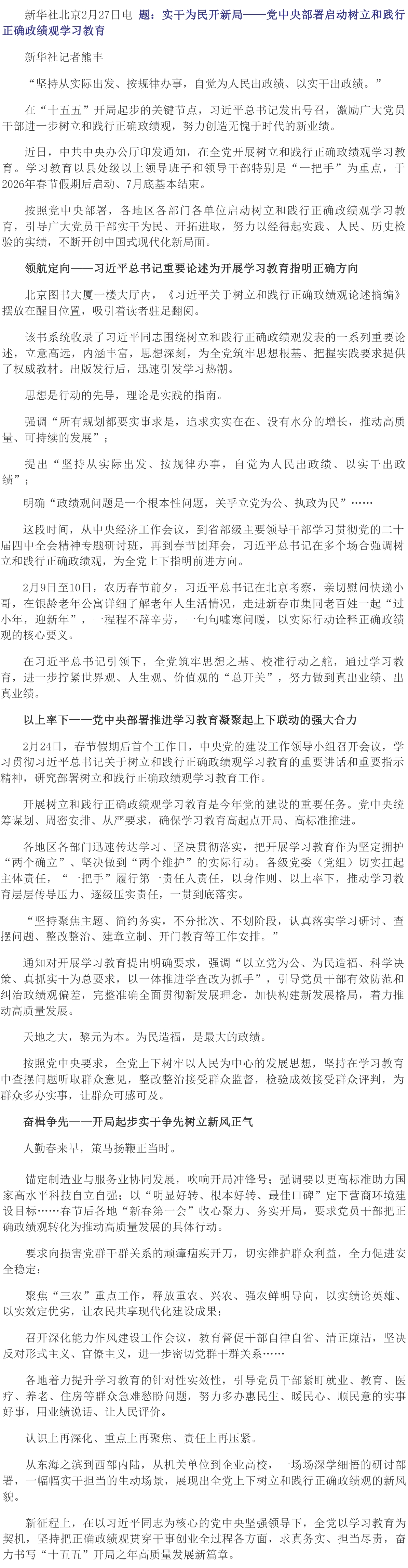 實(shí)干為民開新局丨黨中央部署啟動樹立和踐行正確政績觀學(xué)習(xí)教育