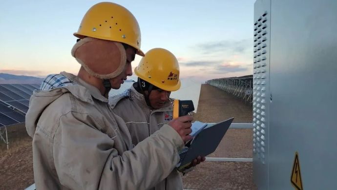 為了電站的安全穩(wěn)定運(yùn)行,改則光儲(chǔ)電站運(yùn)維人員每天必須要做的就是開展設(shè)備巡檢,從中控室出發(fā)前往高壓開關(guān)室、升壓站、光伏區(qū)、生活區(qū)等關(guān)鍵位置,對(duì)變壓器、SVG、逆變器、儲(chǔ)能箱變、光伏板等設(shè)備依次進(jìn)行全方位排查。“冬季電站運(yùn)維面臨的最大挑戰(zhàn)就是大風(fēng),改則光儲(chǔ)電站地勢(shì)較高,冬天幾乎每天都是大風(fēng)天氣,有時(shí)候風(fēng)吹得人都站不穩(wěn),刮得人臉上生疼。越是這種天氣越要認(rèn)真排查有沒有光伏板被風(fēng)吹掉了、設(shè)備運(yùn)行是否正常、組件螺栓有沒有松動(dòng)……生活上的一些用電等隱患也要仔細(xì)排查。如果發(fā)現(xiàn)問題,我們第一時(shí)間記錄并處理。”西藏開投電力工程公司副總經(jīng)理孫繼東說。
