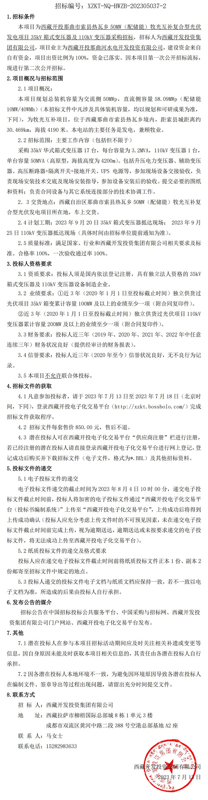 110kV變壓器采購招標(第二次)公告